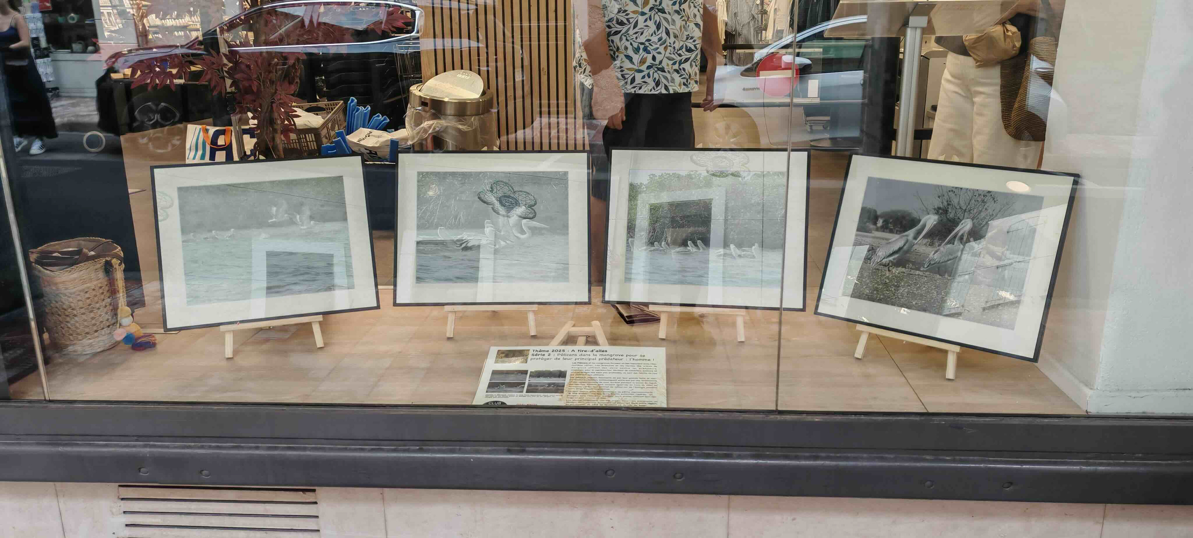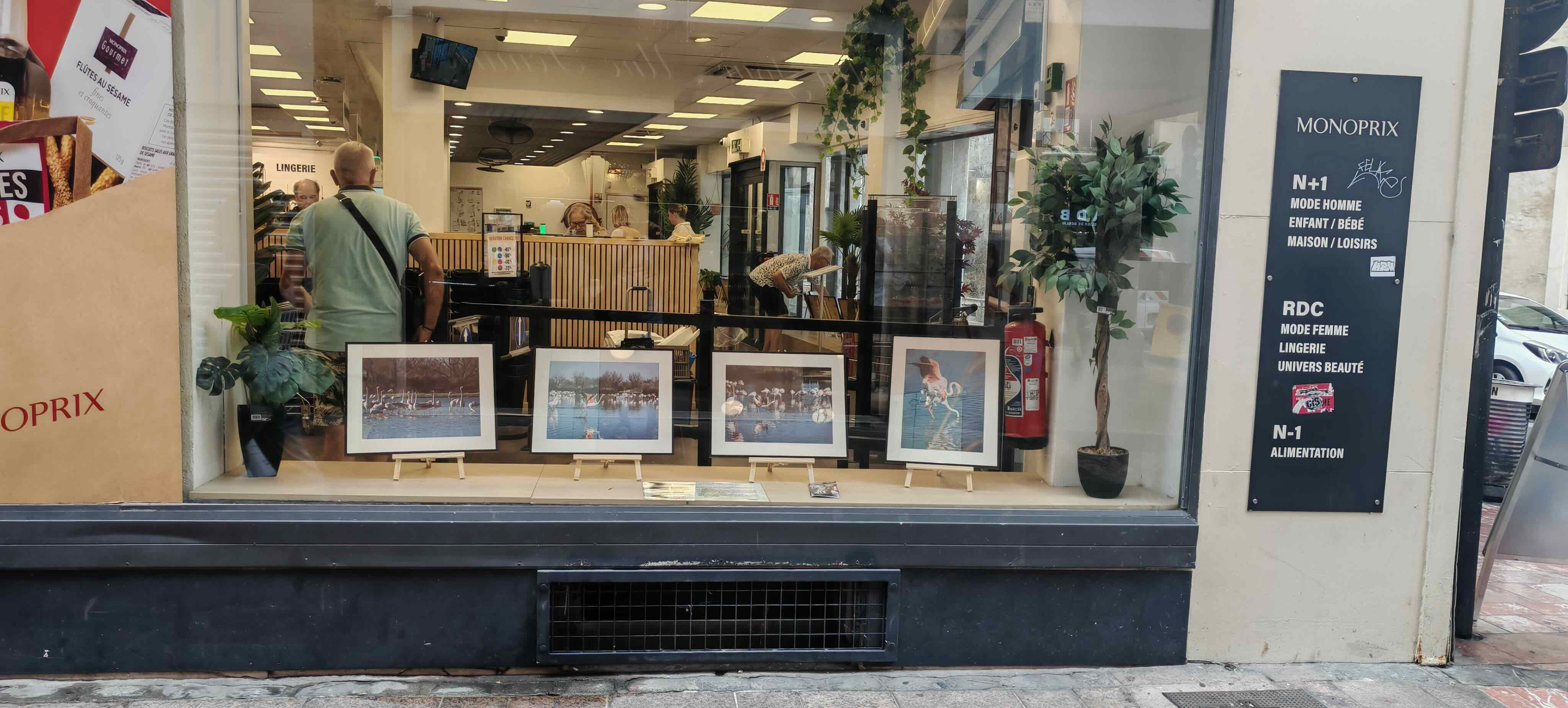 Ci-dessous, mise en place de nos photos dans les vitrines du Monoprix :