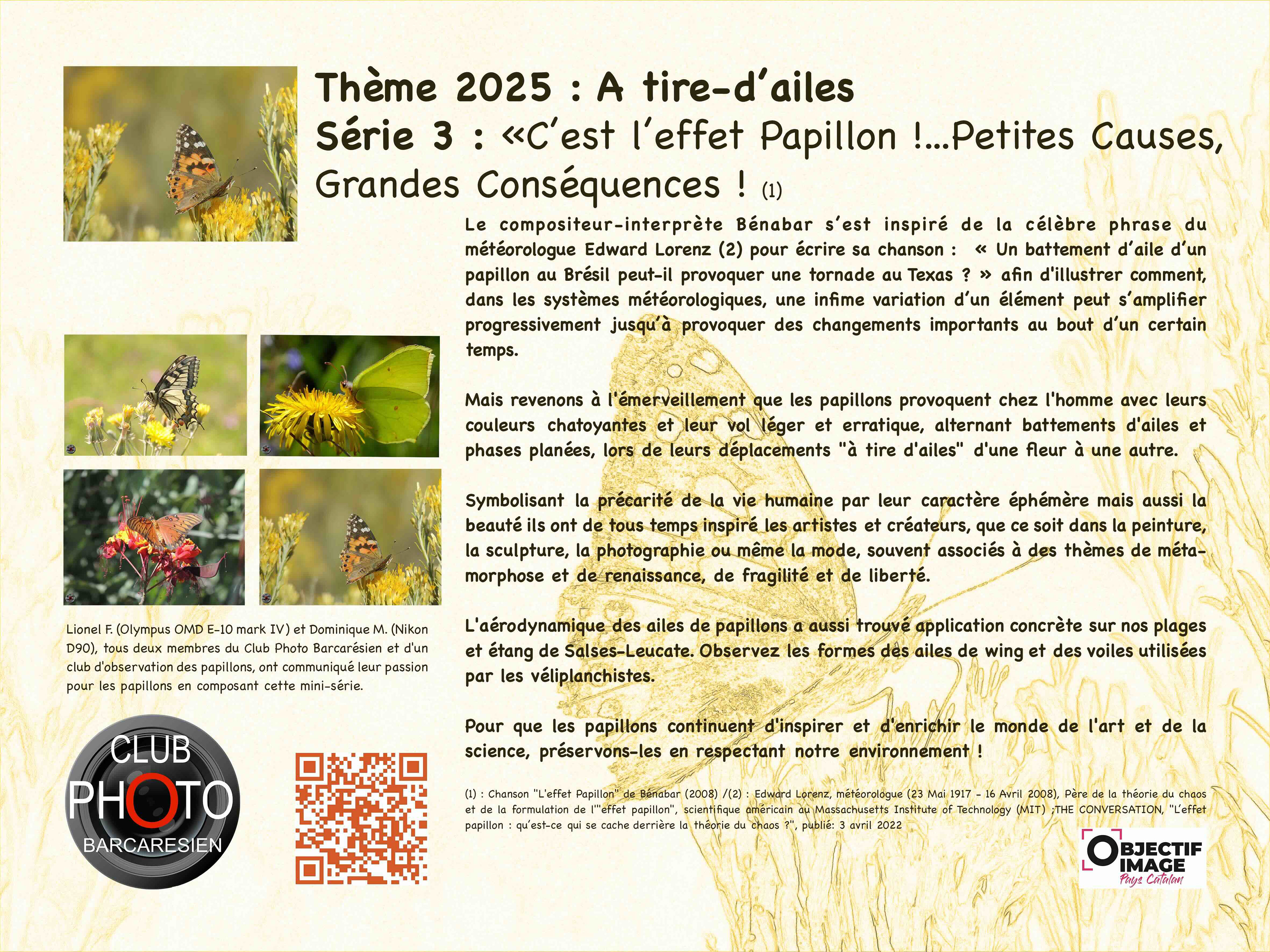 Lionel F. (Olympus OMD E-10 mark IV) et Dominique M. (Nikon D90), tous deux membres du Club Photo Barcarésien et d'un club d'observation des papillons, ont communiqué leur passion pour les papillons en composant cette mini-série.